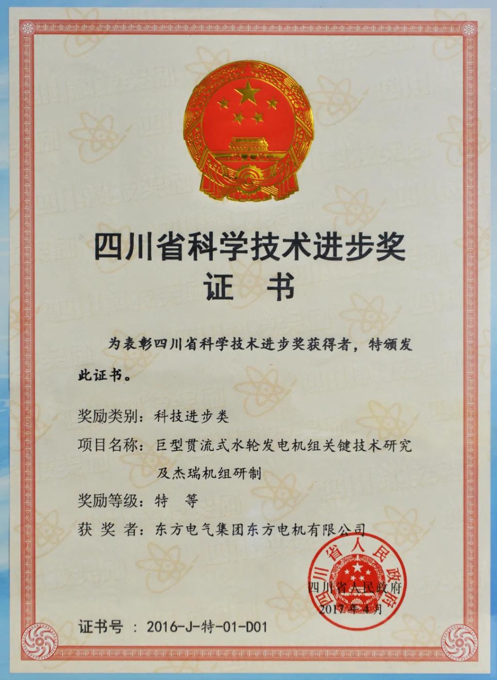 ¡°¾ÞÐ͹áÁ÷ʽˮÂÖ·¢µç»ú×éÒªº¦¼¼ÊõÑо¿¼°½ÜÈð»ú×éÑÐÖÆ¡±»ñËÄ´¨Ê¡2016Äê¿ÆÑ§¼¼Êõ½ø²½½±ÌصȽ±