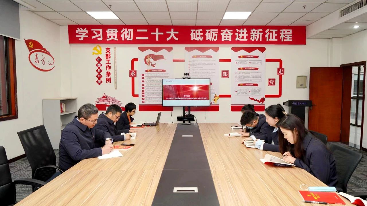 东树新质料团支部组织开展“读报告”“ 上团课”“讲心得”学习党的二十大精神“三合一”运动,团支部书记讲团课、忆初心,团员代表带动读报告、学全文,青年党员讲心得、谈体会,用听得懂、记得住、用得上的语言向宽大团员青年宣传贯彻党的二十大精神,用党的斗争目标感召团员青年,切实营造学习党的二十大精神的良好气氛。